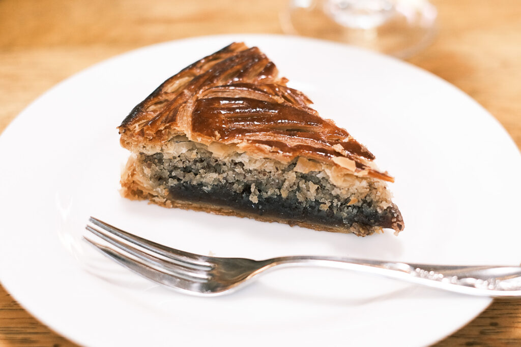 キリスト教の公現祭にあたる1月6日に食べられている伝統的なパイで、生地の中にはクレーム・ダマンド(アーモンドクリーム)と、フェーヴという陶器のミニチュアが入っています。