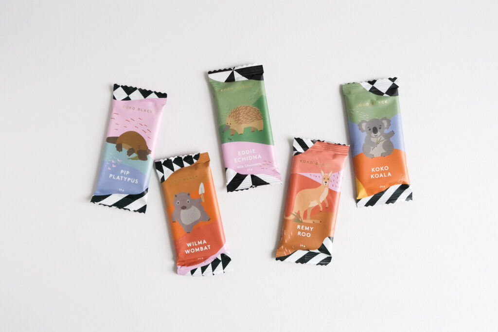 たくさんの種類のチョコレートの中から、コアラやカンガルーなどオーストラリアの動物たちがデザインされた一口サイズのタブレットや、地元食材を使ったビーントゥバーなどをお土産に選びました。